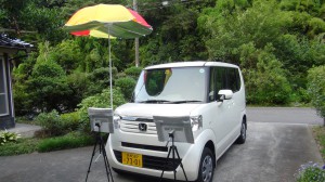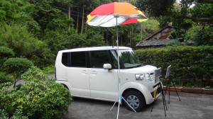 下記写真は、反射用パラソルを設置した状態。